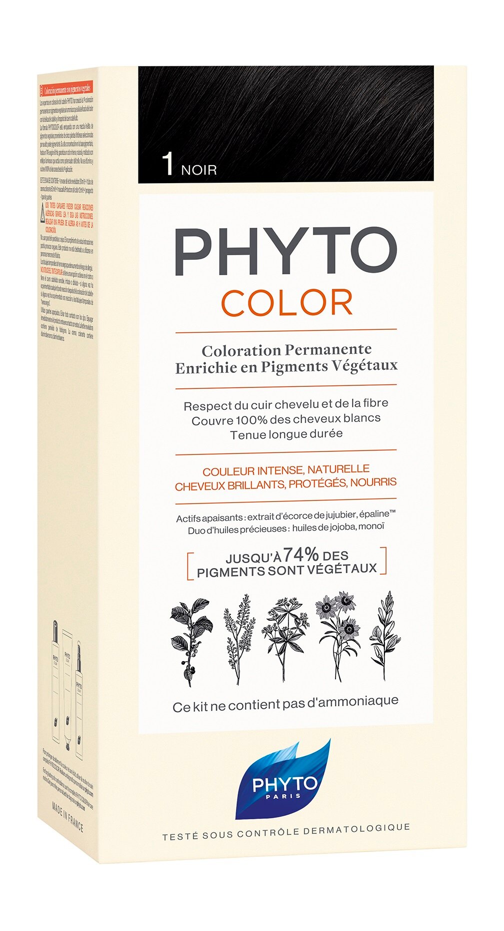 Крем-краска для волос тон 1 (черный) Phyto, обогащенная растительными пигментами с интенсивным и естественным цветом. Высокая концентрация растительных пигментов обеспечивает безукоризненно точное окрашивание (до 81% растительных компонентов в зависимости от оттенка). Красящая основа гарантирует идеальное закрашивание седины и желаемый тон. Растительные компоненты обеспечивают интенсивный цвет, естественный глубокий оттенок и блеск. Два синергичных компонента – масла на 100% растительного происхождения восстанавливают красоту волос и насыщают их питательными компонентами.