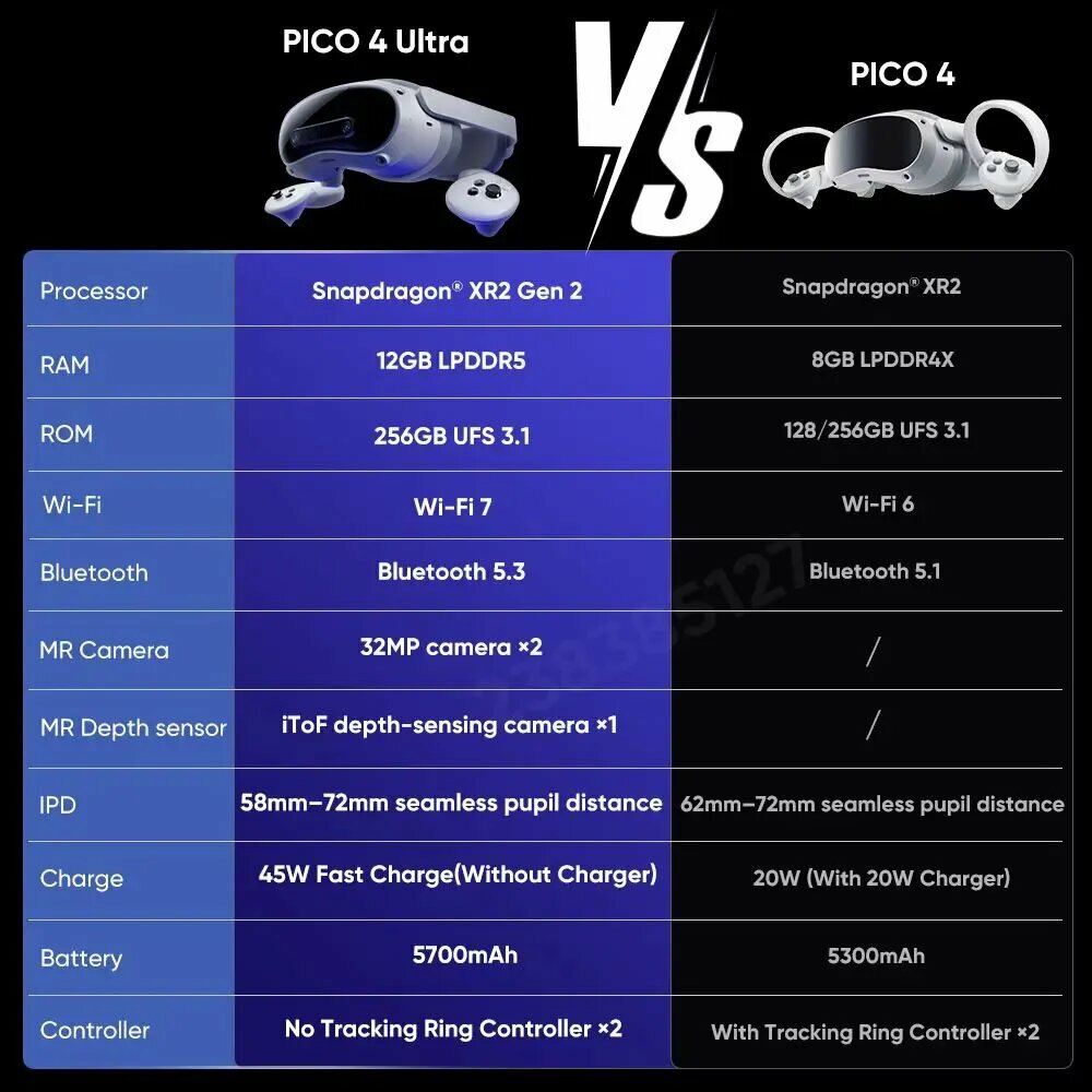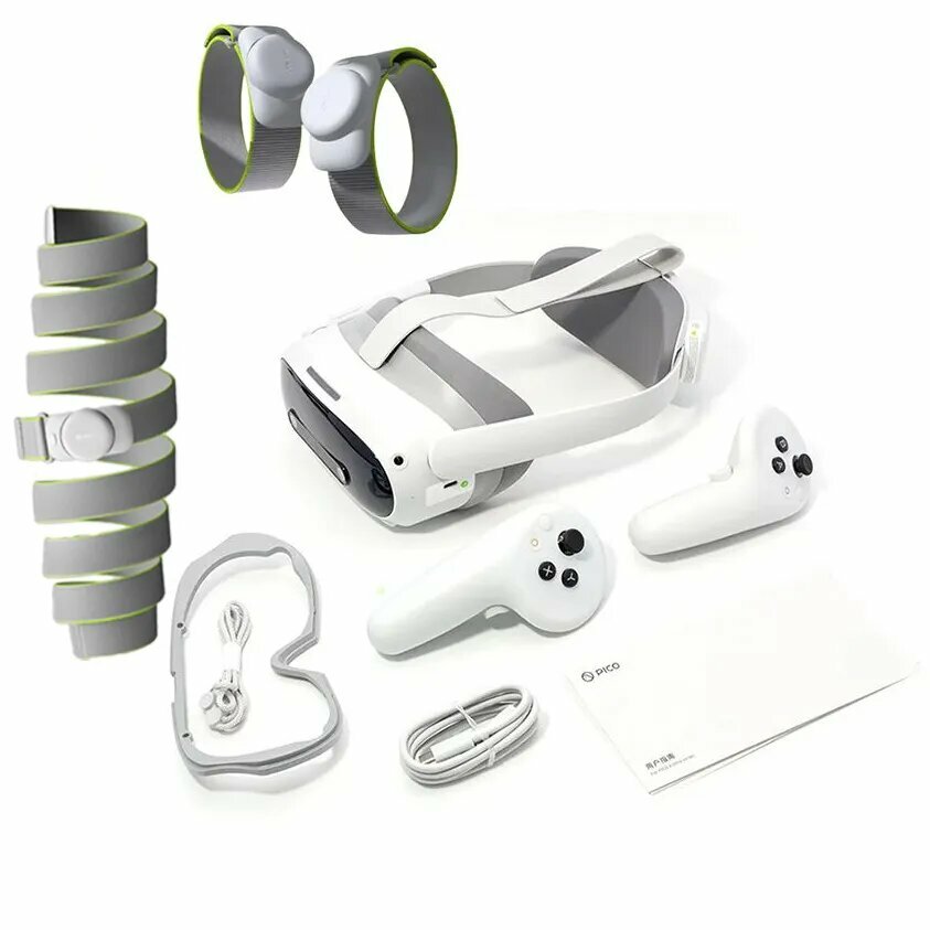 Гарнитура PICO 4 Ultra; Контроллер ×2; Ремешок на запястье ×2; Прокладка для очков; Щелочная батарея 1,5 В АА ×2; Трекер движения ног*2; Трекер движения талии*1; Кабель USB-C к USB-C-разъему; Краткое руководство; Руководство пользователя; Руководство по безопасности и гарантии