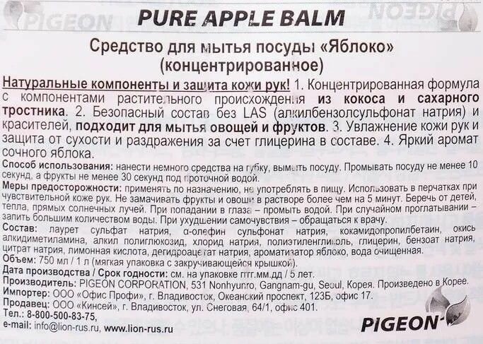 Средство для мытья посуды яблоко Pure Apple Balm, 1000 мл: сравнение цен, характеристики, фото, актуальное наличие и цены.