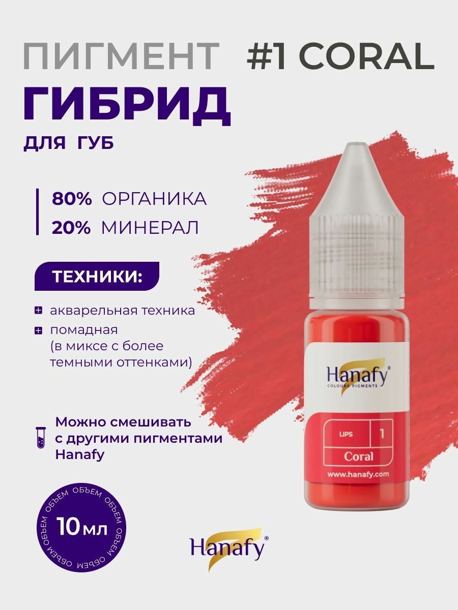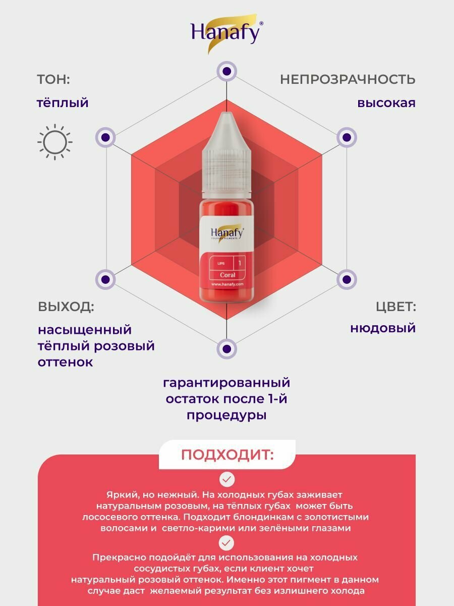 Пигмент №1 Coral для татуажа и перманентного макияжа губ, теплый розовый цвет Ханафи, 10 мл: сравнение цен, характеристики, фото, актуальное наличие и цены.