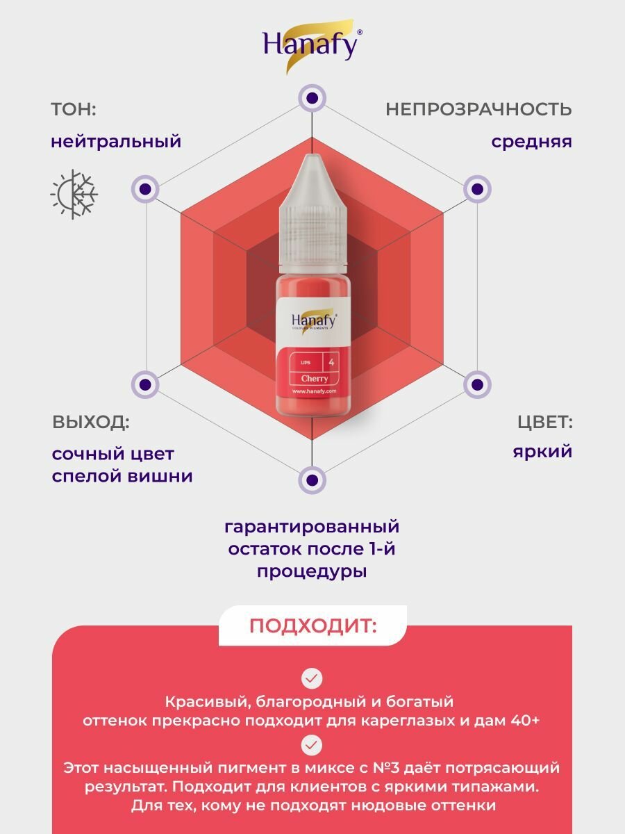 Пигмент № 4 Cherry для татуажа и перманентного макияжа губ, цвет спелой вишни Ханафи, 10 мл: сравнение цен, характеристики, фото, актуальное наличие и цены.