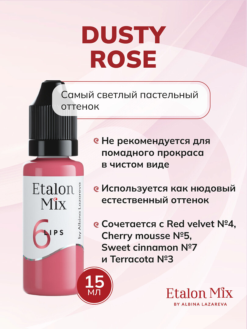 Пигмент Etalon Mix для перманента, татуажа губ №6 Пыльная роза, 15мл. Пигменты Альбины Лазаревой.: сравнение цен, характеристики, фото, актуальное наличие и цены.