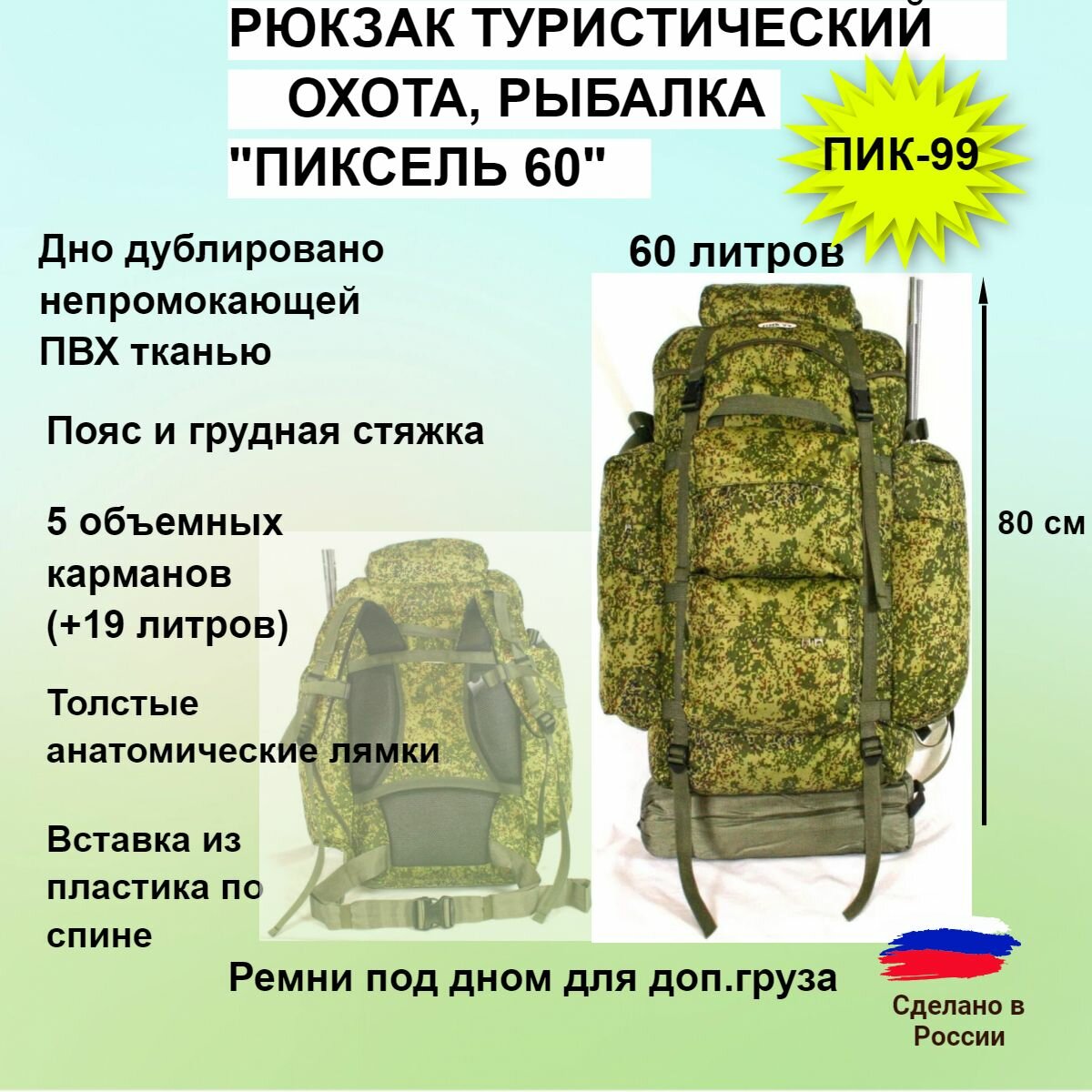 ПИК-99 Рюкзак «Пиксель» 60 л, походный, для рыбалки и охоты (камуфляж «цифра»): сравнение цен, характеристики, фото, актуальное наличие и цены.
