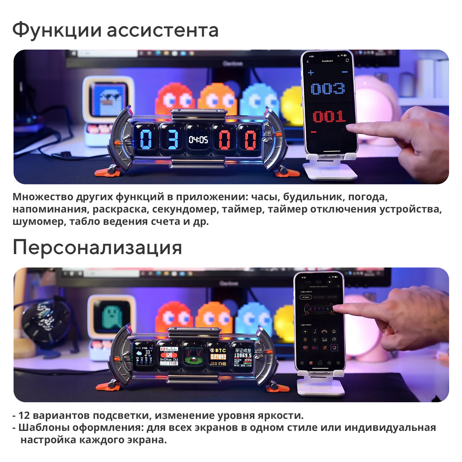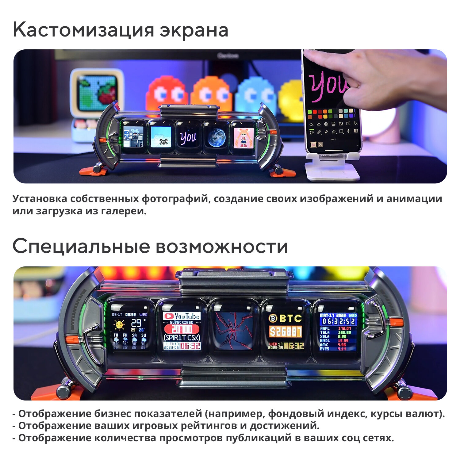 Times Gate - мультизадачный многофункциональный гаджет, состоящий из пяти мини-экранов в одном стильном корпусе! Его экраны с разрешением 128х128 пикселей превращают любые изображения и анимации в яркие пиксельные картинки.