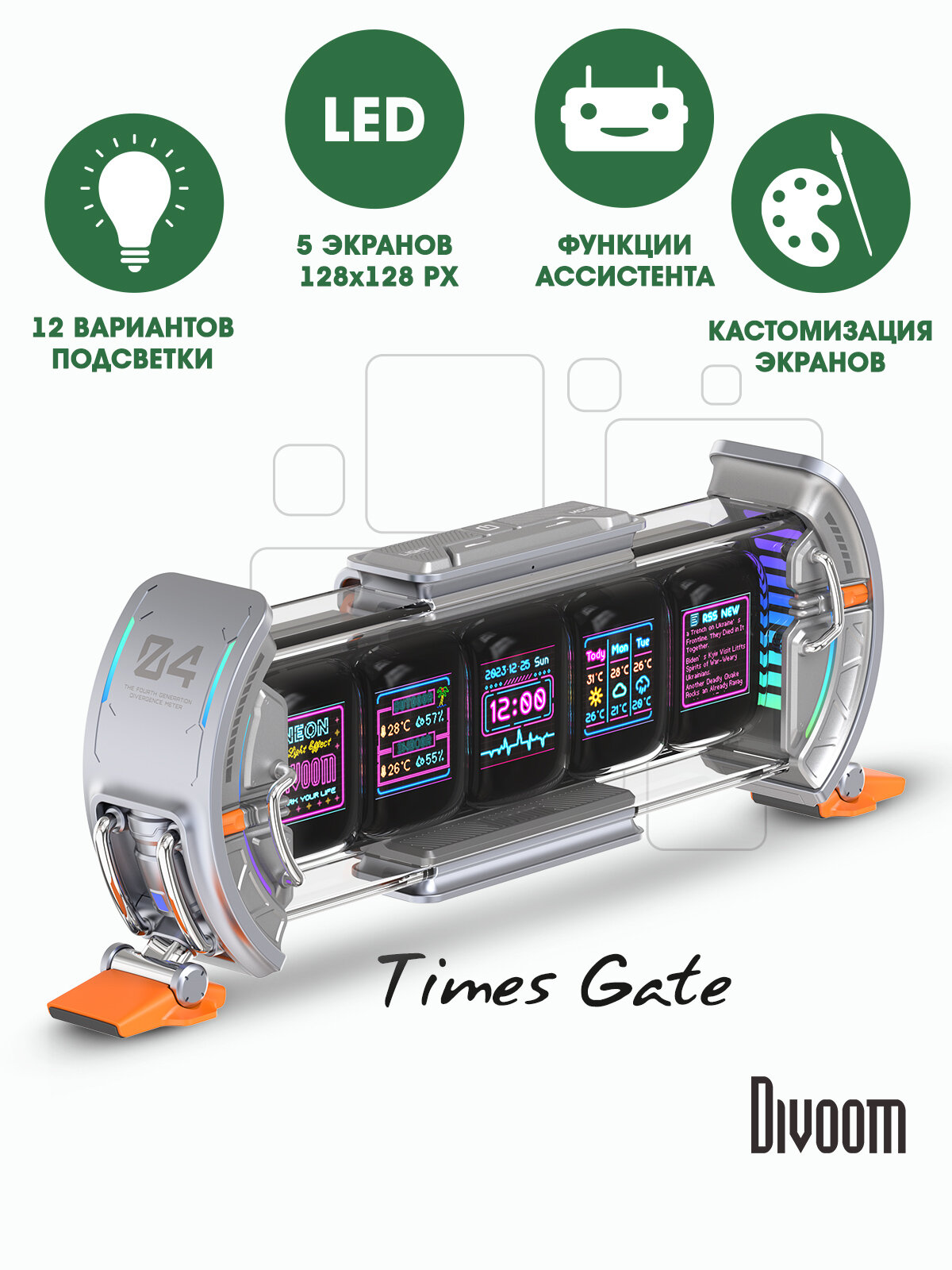 Times Gate - мультизадачный многофункциональный гаджет, состоящий из пяти мини-экранов в одном стильном корпусе! Его экраны с разрешением 128х128 пикселей превращают любые изображения и анимации в яркие пиксельные картинки.