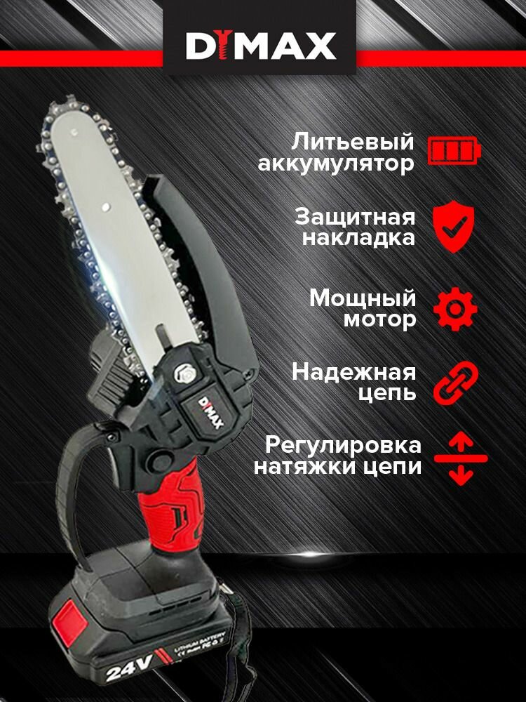 DYMAX DMXS6.0-Li – это современная цепная пила нового поколения, которая станет незаменимым помощником на даче, в саду или в огороде. С ее помощью можно легко обрезать деревья, древесину и распиливать доски.