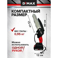 Мини-пила DYMAX DMXS6.0-Li весит всего 1 кг и не занимает много места, что позволяет брать ее с собой на природу или на дачу. Несмотря на компактность и легкость, данная мини-пила без труда справляется со своей задачей благодаря двигателю с мощностью 600 Вт.