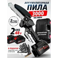 Купить Пила аккумуляторная цепная 6 дюймов, 2 АКБ, кейс(мини пила, электропила) с доставкой по всей России.
