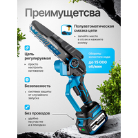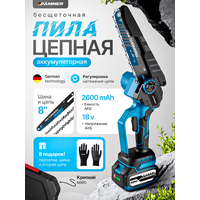 Пила аккумуляторная DAMMER — компактный и мощный инструмент для сада и мелких строительных работ! Эта пила аккумуляторная цепная из линейки DAMMER оснащена бесщеточным двигателем, который обеспечивает высокую производительность, долговечность и минимальный износ. С длиной шины 8" (20 см) и шагом цепи 1/4, мини пила аккумуляторная идеально подходит для обрезки веток, распила дров и ухода за деревьями, работая как сучкорез аккумуляторный цепной.