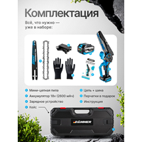 Компактная и легкая, мини пила аккумуляторная цепная DAMMER позволяет работать в труднодоступных местах, а эргономичный дизайн снижает усталость рук. В комплекте вы получаете дополнительную шину, цепь и фирменные перчатки для безопасной и комфортной работы. Пила цепная электрическая DAMMER — это мобильность и эффективность для садоводов и мастеров.
