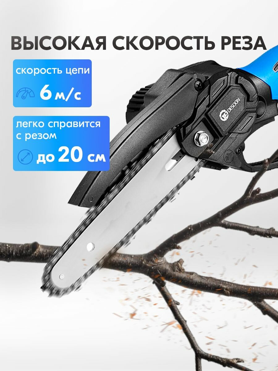 Пила аккумуляторная цепная DESOON 6″ + 8″ шина, 2 цепи, 2 шины, 2 батареи в кейсе