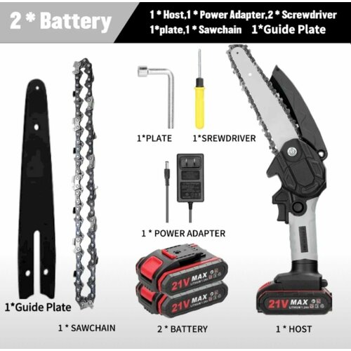 Пила аккумуляторная цепная Geevorks с 2 АКБ, 800Вт, 21V, сучкорез аккумуляторный, пила электрическая цепная