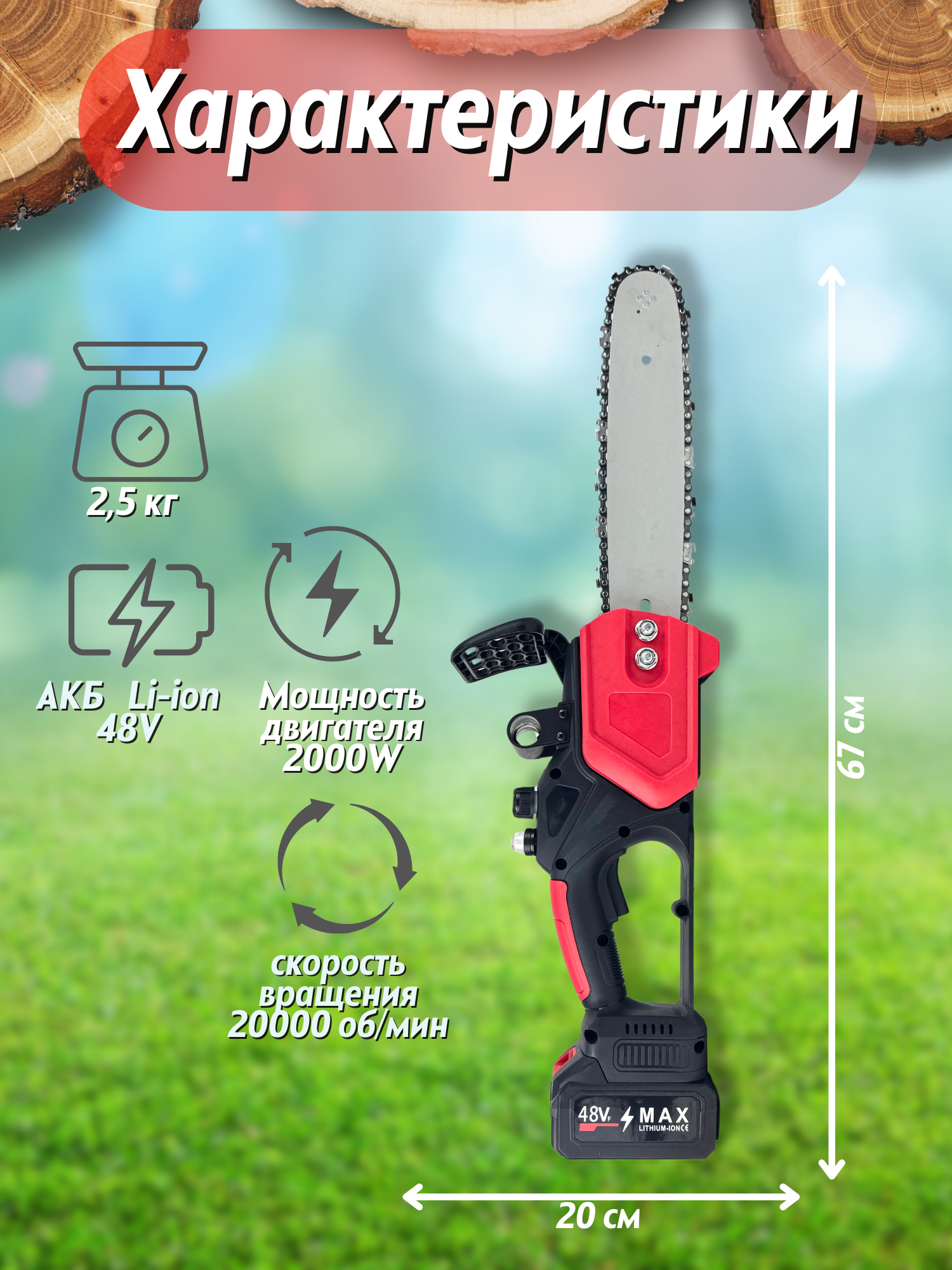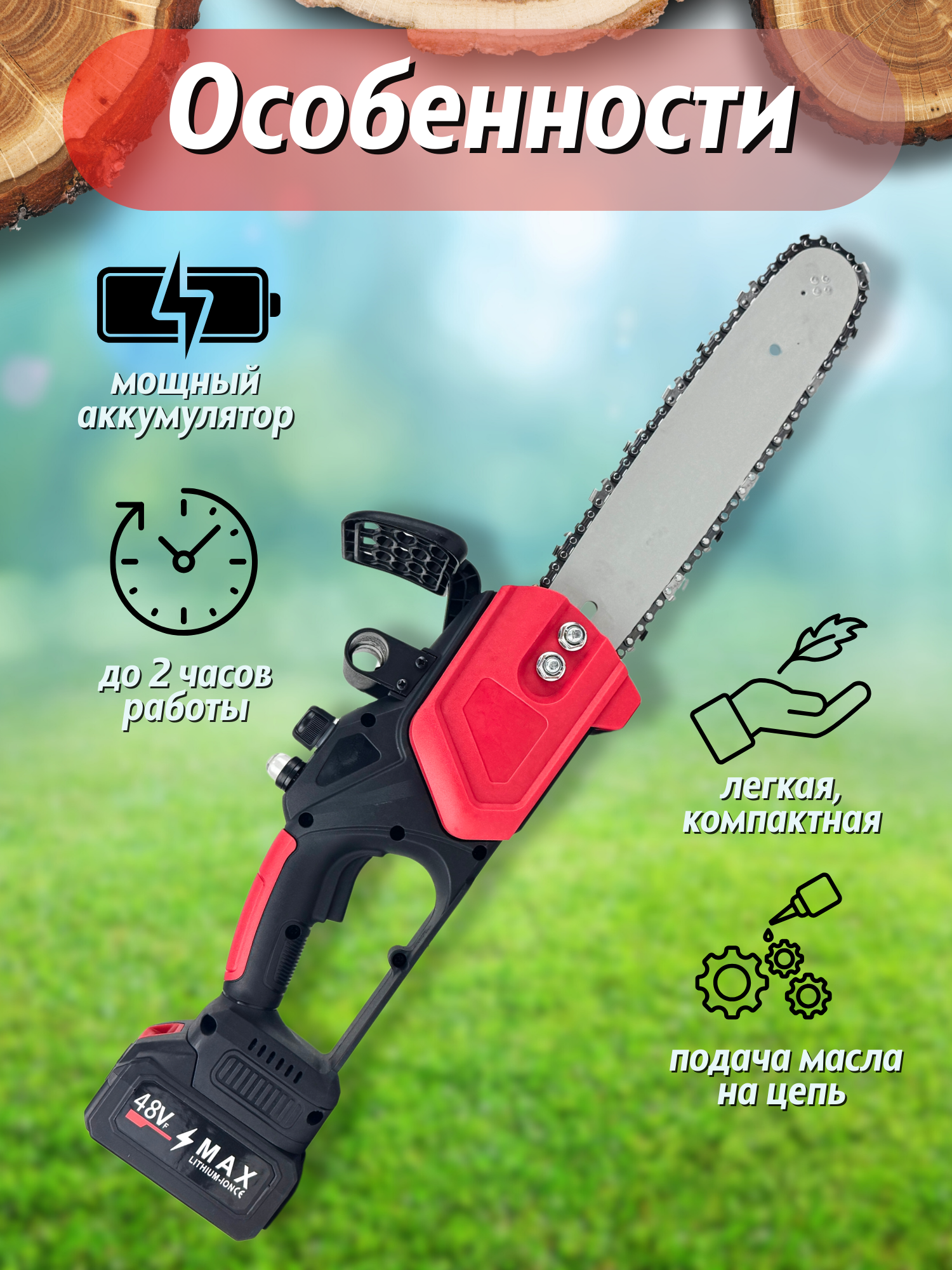 Аккумуляторная цепная пила хищник представляет собой мощный и эффективный электроинструмент, специально разработанный для работ в саду, огороде или даче. С ее помощью вы сможете легко обрезать ветки, подрезать кусты и маленькие деревья.