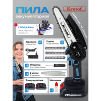 Купить Пила аккумуляторная цепная Krotof CCS01 (600Вт, 3 цепи, 2 шины, 2 аккумулятора) с доставкой по всей России.