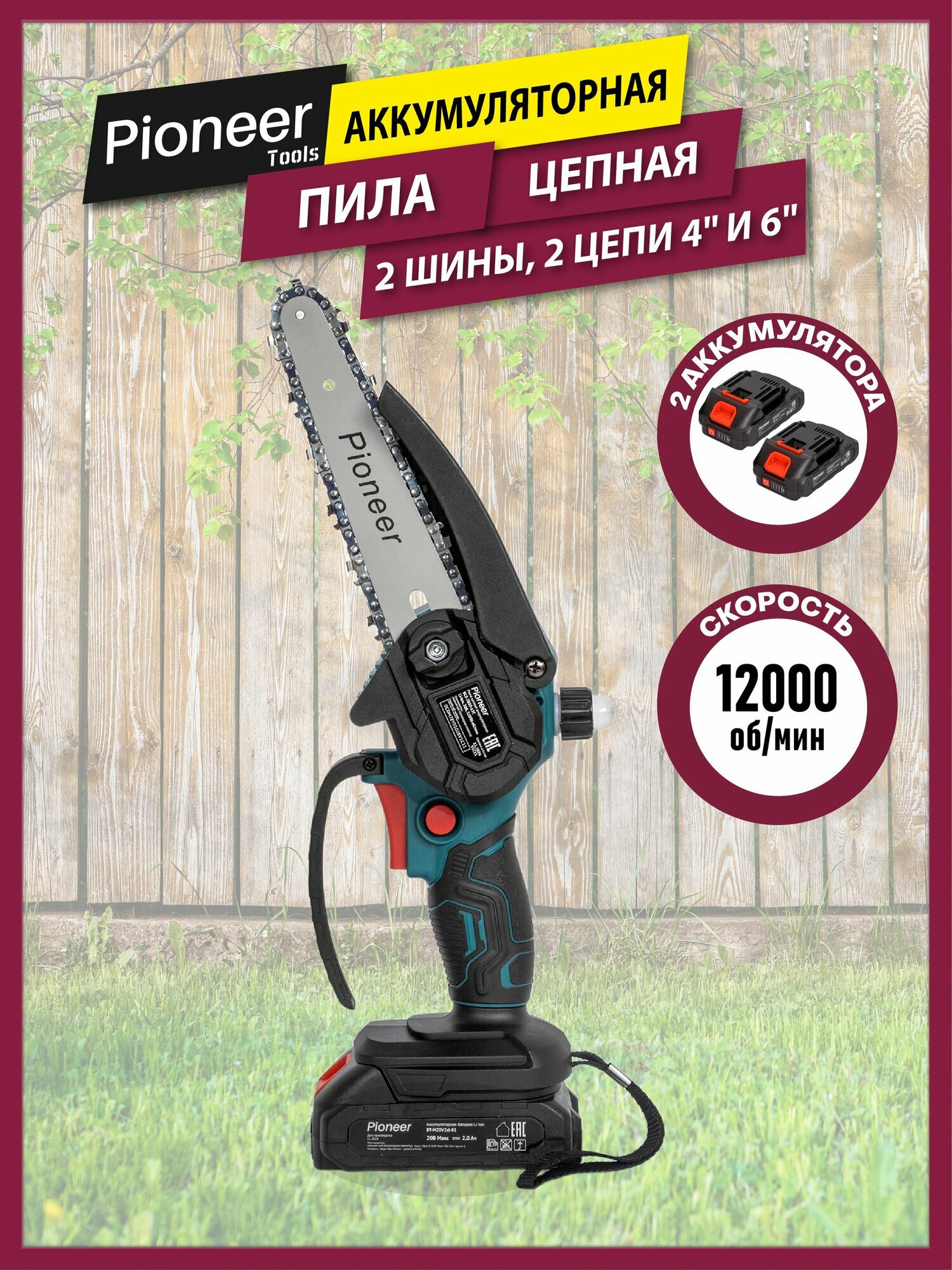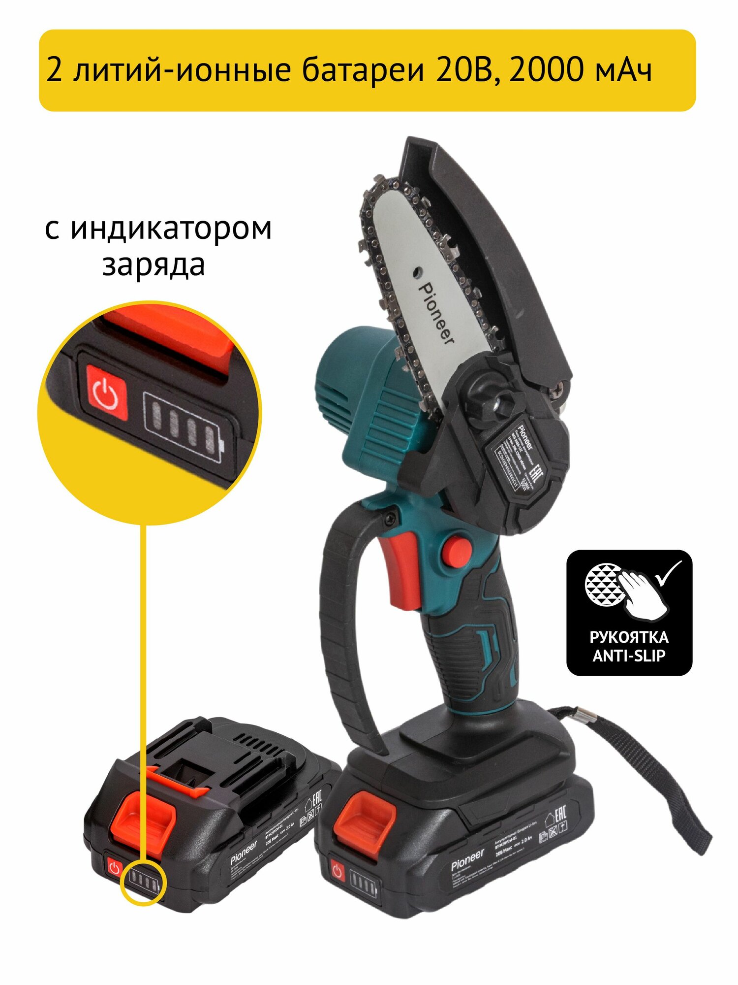 Пила аккумуляторная цепная мини, садовая Pioneer BCS-2020-12C в кейсе, 2 АКБ, с набором шин и цепей: сравнение цен, характеристики, фото, актуальное наличие и цены.