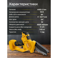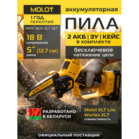 | Комплект поставки | Пила цепная аккумуляторная MOLOT MMS 1805 XLT Lite, шина 5" (12,7 см), цепь, аккумулятор 18 В 2 Ач - 2 шт., зарядное устройство |
