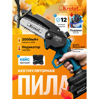 Купить Пила аккумуляторная цепная с масляным насосом Krotof CCS02-1, мощность 800 Вт, АКБ, цепь, шина, кейс с доставкой по всей России.