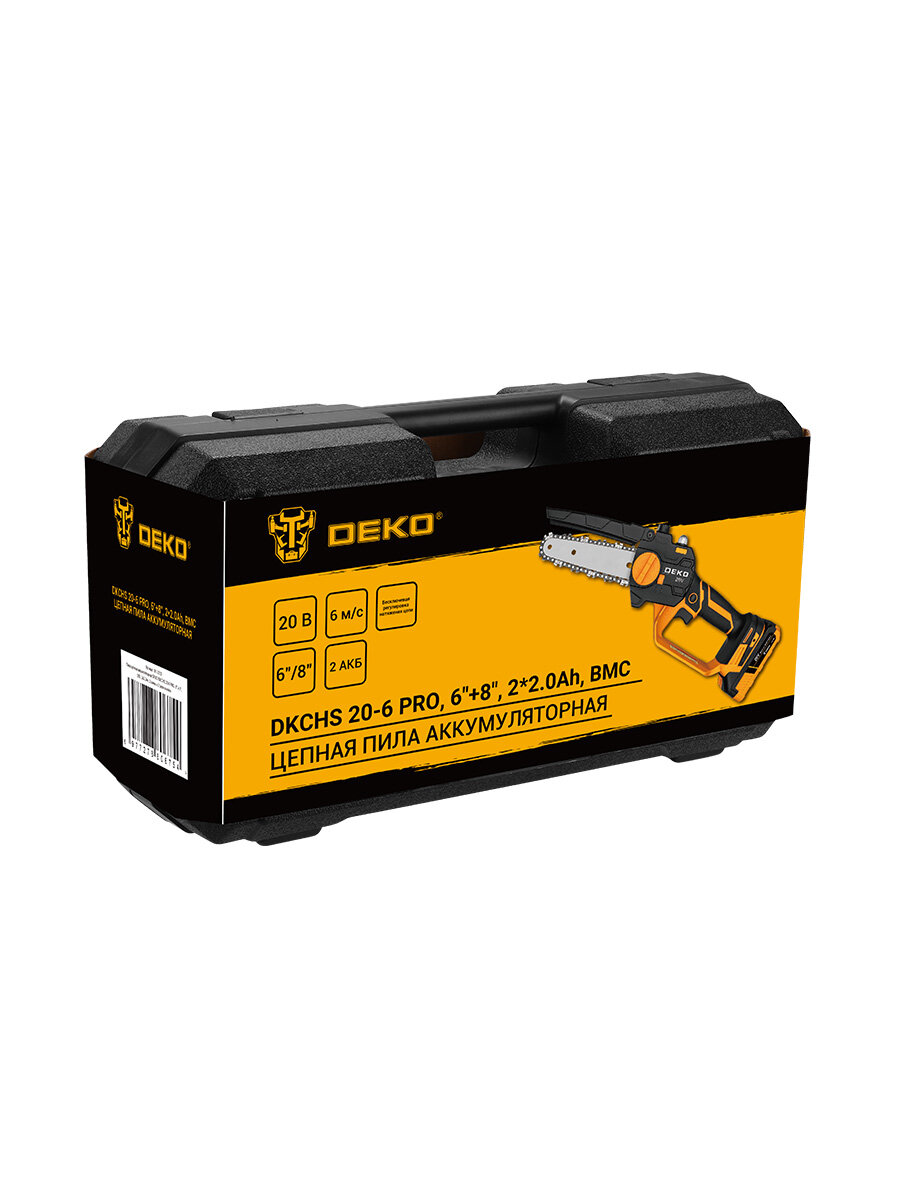 Пила аккумуляторная цепная садовая DEKO DKCHS 20-6 PRO, 6″ и 8″, 20В, 2×2.0Ач, 2 шины и 2 цепи в кейсе: сравнение цен, характеристики, фото, актуальное наличие и цены.