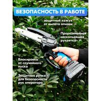 Садовая пила аккумуляторная цепная легко запускается нажатием одной кнопки. Встроенный предохранительный механизм предотвращает случайное включение. Высокая скорость вращения цепи обеспечивает чистый, аккуратный срез без сколов и заусенцев. Такая электро пила аккумуляторная цепная станет незаменимым помощником при сезонных работах по уходу за деревьями и кустами.