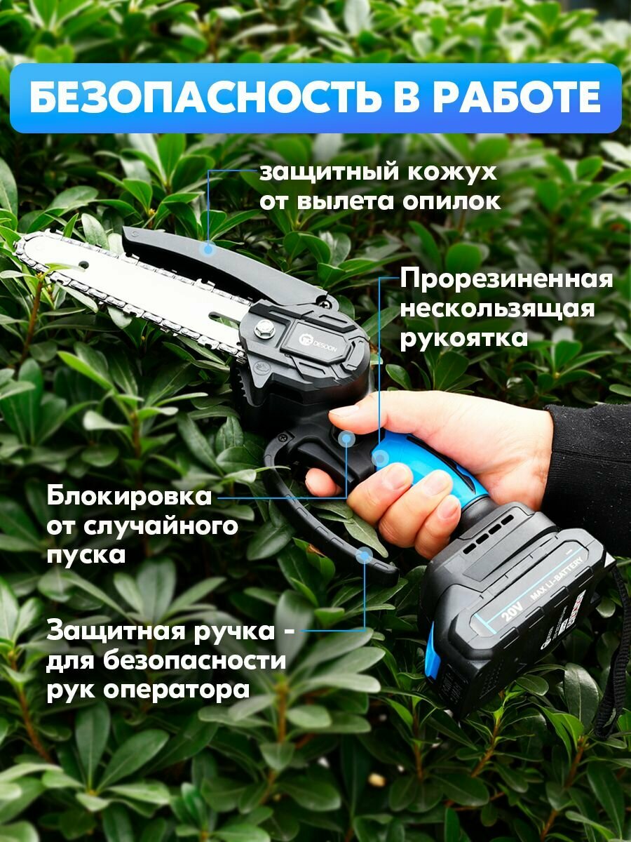 Мини цепная пила аккумуляторная легко справляется с заготовкой дров, обработкой садовых деревьев, демонтажом деревянных конструкций и другими видами бытовых и строительных работ. Она объединяет преимущества профессиональной техники и удобство компактного формата.