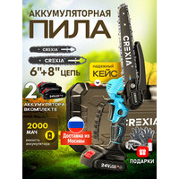 Пила аккумуляторная цепная садовая мини сучкорез электропила электрическая (6 + 8 дюймов, 2 цепи, 2 батареи 2000mah)