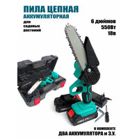 Аккумуляторная цепная пила с длиной шины 6 дюймов - это мощный и удобный инструмент для выполнения различных задач по распиловке дерева в саду или на даче. Благодаря мощному мотору и двум аккумуляторам емкостью 1500 мА*ч, пила обеспечивает высокую производительность и продолжительное время работы. В комплекте идут два аккумулятора, что позволяет продолжать работу без перерывов. Блокировка случайного запуска, подсветка и регулировка натяжения цепи делают работу с пилой безопасной и комфортной. Прорезиненные рукоятки обеспечивают надежный хват.