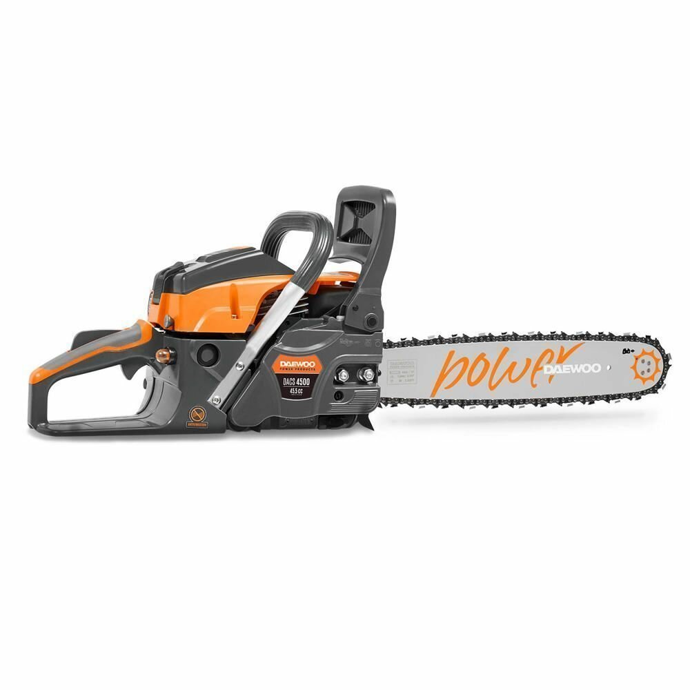 Пила бензиновая Daewoo DACS 4500 — полупрофессиональная (фермерская) модель линейки бензиновых пил Master Line. Подходит для спиливания небольших деревьев и сучьев, заготовки дров и стройки. В комплекте туристический топорик. Низкопрофильная цепь длиной 40 см обеспечивает чистый и точный рез даже при работе с толстыми бревнами.