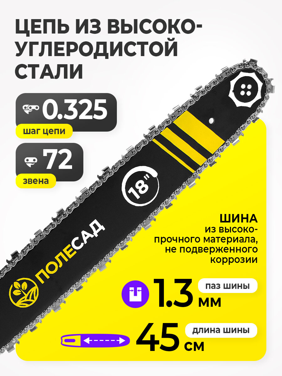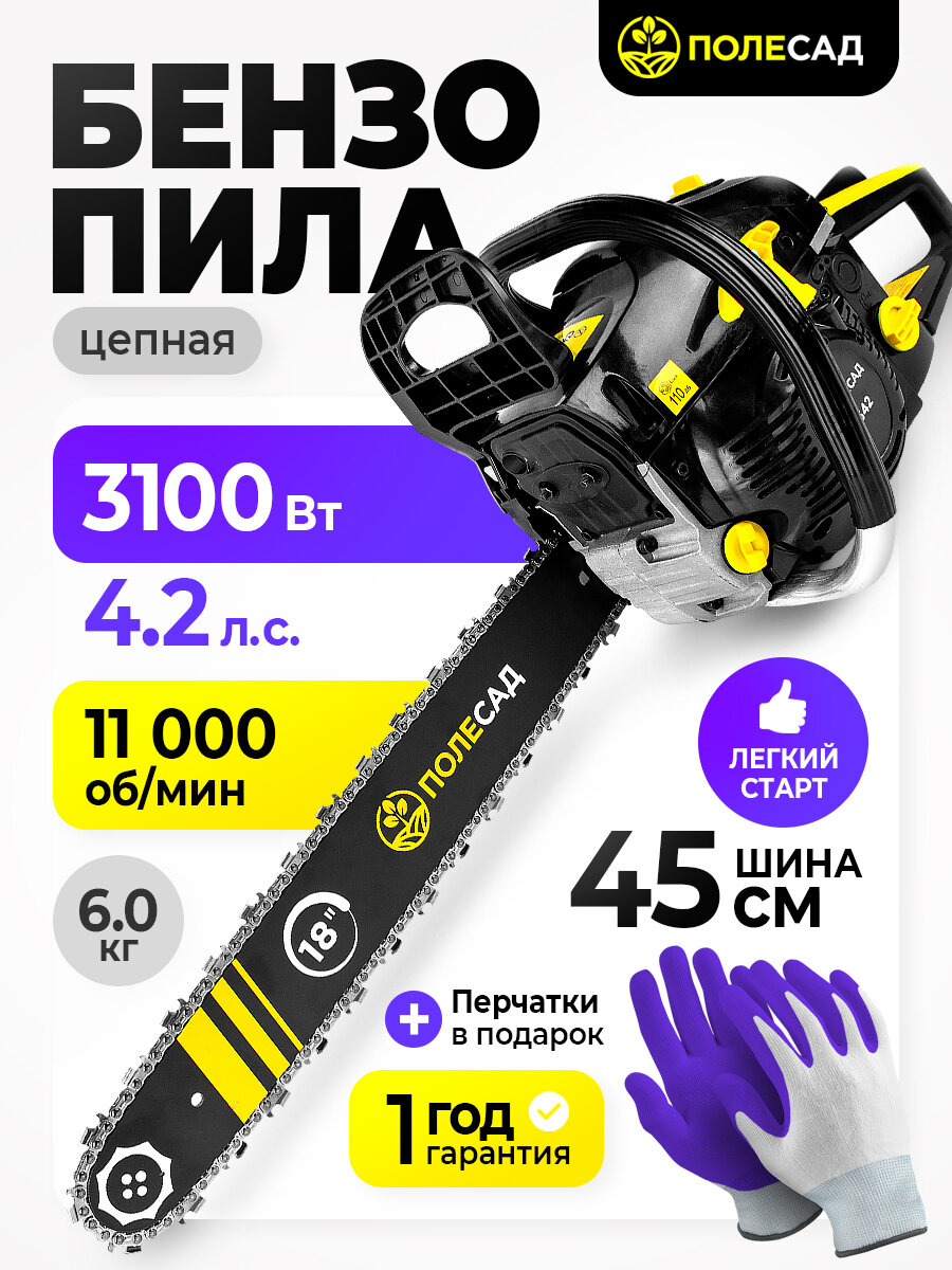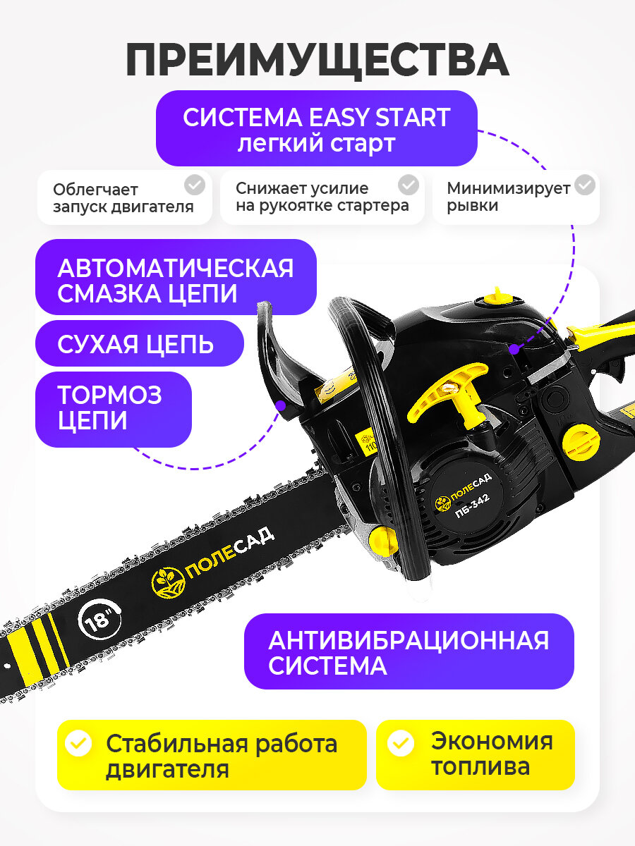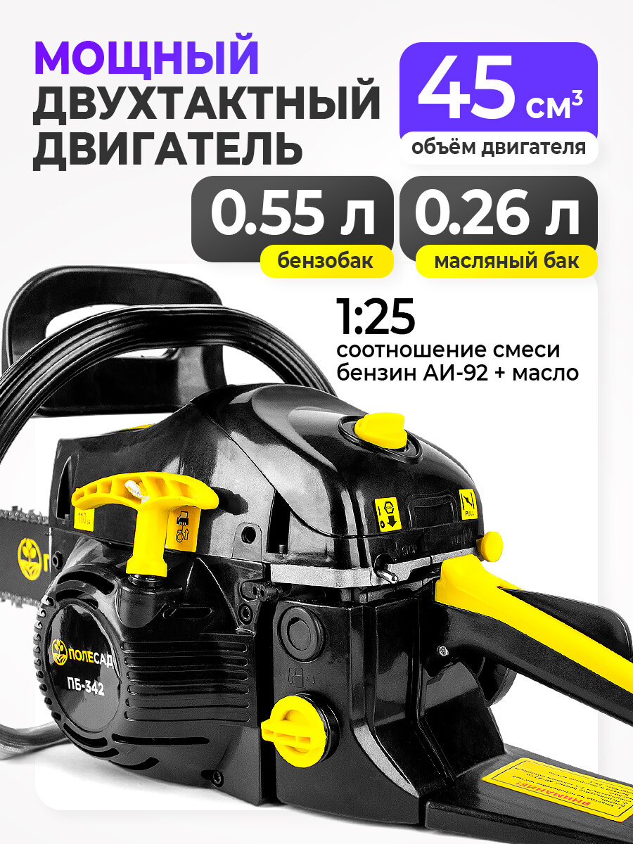 Пила бензиновая цепная полесад ПБ-342 3,1кВт/4,2л. с, шины18″/45cм 0,325″,1,3мм-72зв: сравнение цен, характеристики, фото, актуальное наличие и цены.