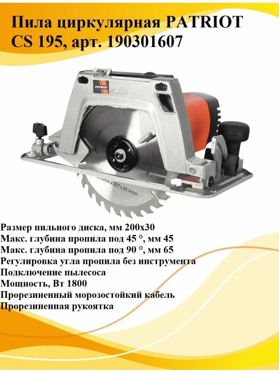 Купить Пила дисковая циркулярная PATRIOT CS 195 с доставкой по всей России.