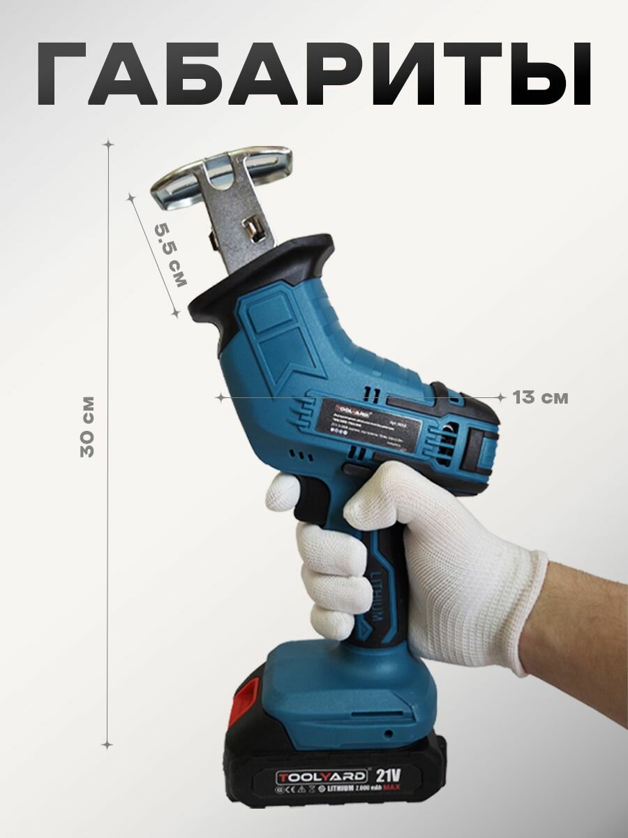 Сабельная пила TOOLYARD 21V 1шт , 2шт Li-ion аккумулятора 2.0Ач, зарядное устройство, в комплекте полотна по дереву и металлу, в кейсе.