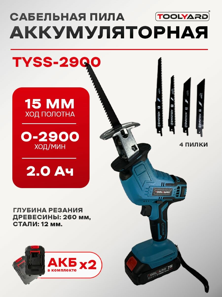 Пила сабельная аккумуляторная TOOLYARD TYSS-2900