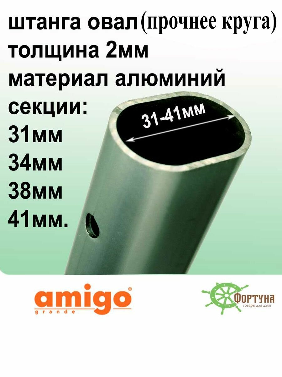 Сучкорез штанговый Amigo 76111 с ножовкой предназначен для обрезки веток на высоте. Состоит из алюминиевой раздвижной штанги и пилы с двумя ограничивающими крюками, чтобы на высоте пила не срывалась с ветки. Штанга. Изготовлена из алюминия и пластика. В собранно виде имеет длину 80 см и весит 1200 грамм. Состоит из пяти секций 50 см каждая. Фиксируются оранжевыми барашками. Штанга в сечении имеет форму эллипса, что повышает ее прочность. Большая часть имеет сечение 4.5 см на 3.5 см, а самая маленькая 3 см на 2 см. Для на разложенной штанги 260 см. Пила. Изготовлена из закаленной стали 65Mn. Сталь 65Mn (HCS) Это инструментальная углеродистая сталь. которая широко используется для изготовления топоров, ножей электрорубанков, полотен электроножовок и других инструментов, предназначенных для обработки древесины, ДВП, пластика и т. п. Также данная сталь сейчас находит применение в производстве ножей - благодаря высоким свойствам стойкости режущей кромки. Полотно имеет длину 47 см, а размеры с держателем 60 см. 3D-заточка высота зуба 6мм. По краям крюки, чтобы пила не сорвалась с ветки. Пила комплектуется пластиковыми ножнами, позволяющими безопасно транспортировать изделие. Насаживается на штангу и фиксируется двумя винтами с барашками. Под барашки идут шайба и гровер, чтобы соединение не расшаталось при пилении. после насадки пилы на штангу вес длина изделия регулируется от 130 см до 300 см В целом дизайн штанговой пилы 76111 Amigo производит неизгладимое впечатление своим космическим видом и может служить отличным подарком. технические характеристики: Длина штанговой пилы в собранном виде 135 см Длина в разложенном состоянии 300 см вес собранной пилы 1,7 кг вес алюминиевой штанги 1.2 кг длина собранной штанги 80 см разложенной штанги 250 см