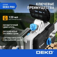 Купить Пила цепная аккумуляторная бесщеточная DEKO DKCHS 40 PRO, 14″, 2х20В, 2×4.0Ач, двойное з/у с доставкой по всей России.