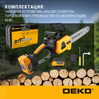 Купить Пила цепная аккумуляторная бесщеточная в кейсе DEKO DKCHS 20, 10″, 20В, 2×4.0Ач, з/у с доставкой по всей России.