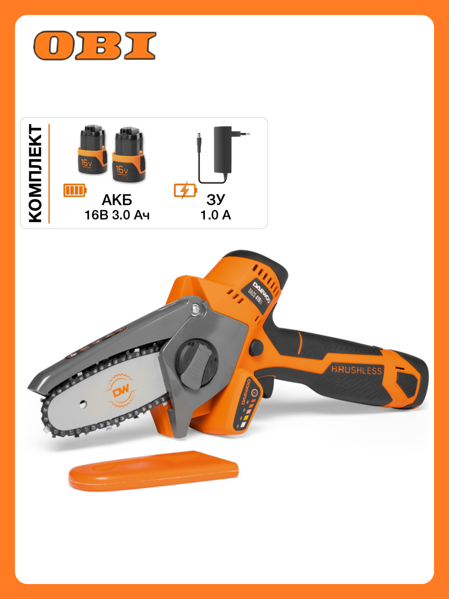 Пила цепная аккумуляторная DAEWOO «DACS 416Li», с АКБ и зарядным устройством, оранжевая: сравнение цен, характеристики, фото, актуальное наличие и цены.