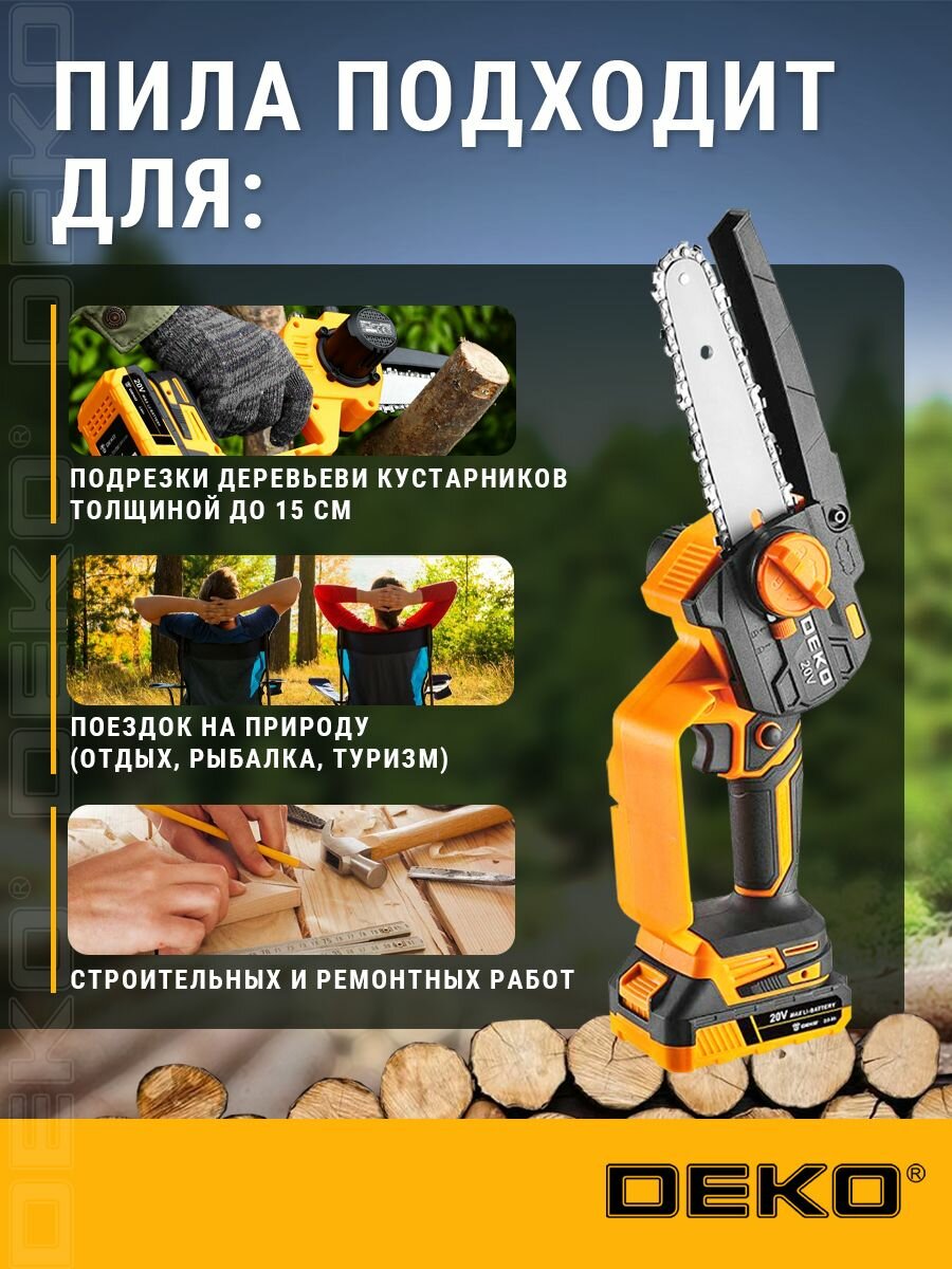 Купить Пила цепная аккумуляторная DEKO DKCHS 20-6, 20В, 2×2.0Ач в кейсе с доставкой по всей России. Пила цепная аккумуляторная DEKO DKCHS 20-6, 20В, 2×2.0Ач в кейсе: сравнение цен, характеристики, фото, актуальное наличие и цены.