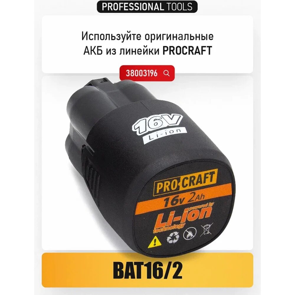 Купить Пила цепная аккумуляторная PROCRAFT 16В 4′, 10 см, шина+цепь, Без АКБ и ЗУ PKA16 с доставкой по всей России.