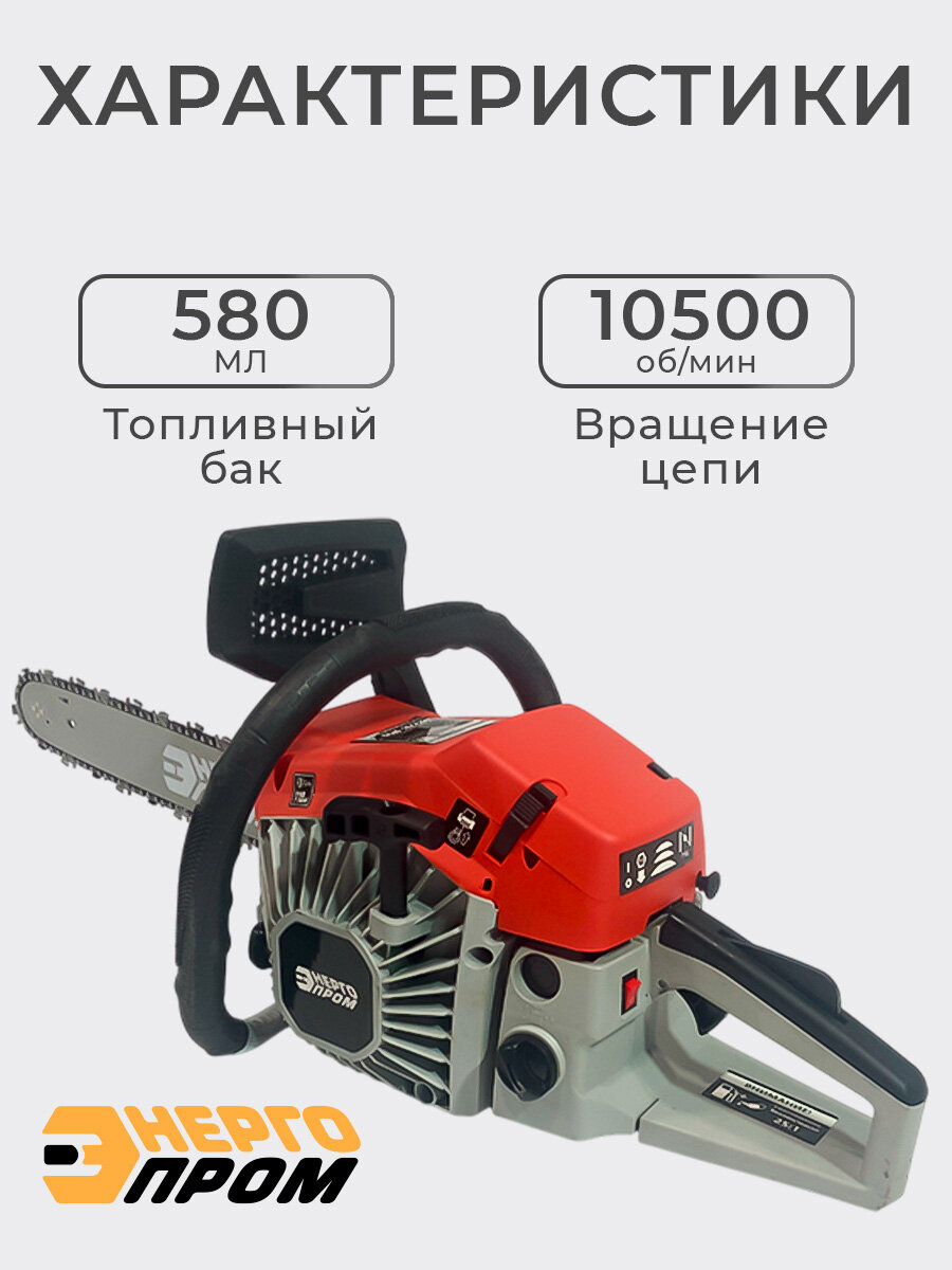 Бензопила "Энергопром" представляет собой мощный и надежный инструмент, относящийся к категории садовой техники, идеально подходящий для различных работ по обрезке деревьев и распиливанию бревен. Эта пила оборудована высокопроизводительным бензиновым двигателем с рабочим объемом 45 см³, что обеспечивает ей достаточную мощность для выполнения самых сложных задач. С объемом топливного бака в 0,580 л, бензопила способна работать долгое время без необходимости дозаправки, что делает ее идеальным садовым инструментом для продолжительной работы. Мощность этой цепной бензиновой пилы составляет 2500 Вт, обеспечивая высокую производительность и эффективность при работе с древесиной. Шина длиной 40 см позволяет легко справляться даже с крупными бревнами и обширными областями обрезки. Скорость вращения цепи варьируется от минимальной в 2800-3000 об/мин до максимальной в 10500 об/мин, что гарантирует точность и скорость выполнения работ. Цепь с шагом 0,325 и толщиной 0,058 (1,5 мм) включает в себя 64 звена, обеспечивая чистый и ровный рез. Эта бензопила, являясь неотъемлемой частью садового оборудования, станет незаменимым помощником в уходе за садом, для обрезки деревьев и выполнении строительных и ремонтных работ. Пила цепная бензиновая "Энергопром" сочетает в себе высокую эффективность, долговечность и безопасность использования, что делает ее отличным выбором для каждого садовода и строителя.