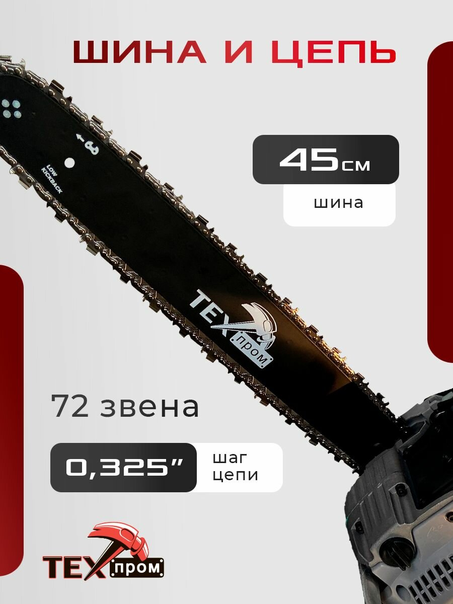 Пила цепная бензиновая "Техпром" ПЦБ-18/2800 серия PROMO, 2800вт/3,8 лс, шина 45см/18 дюймов, бензопила для дачи и сада