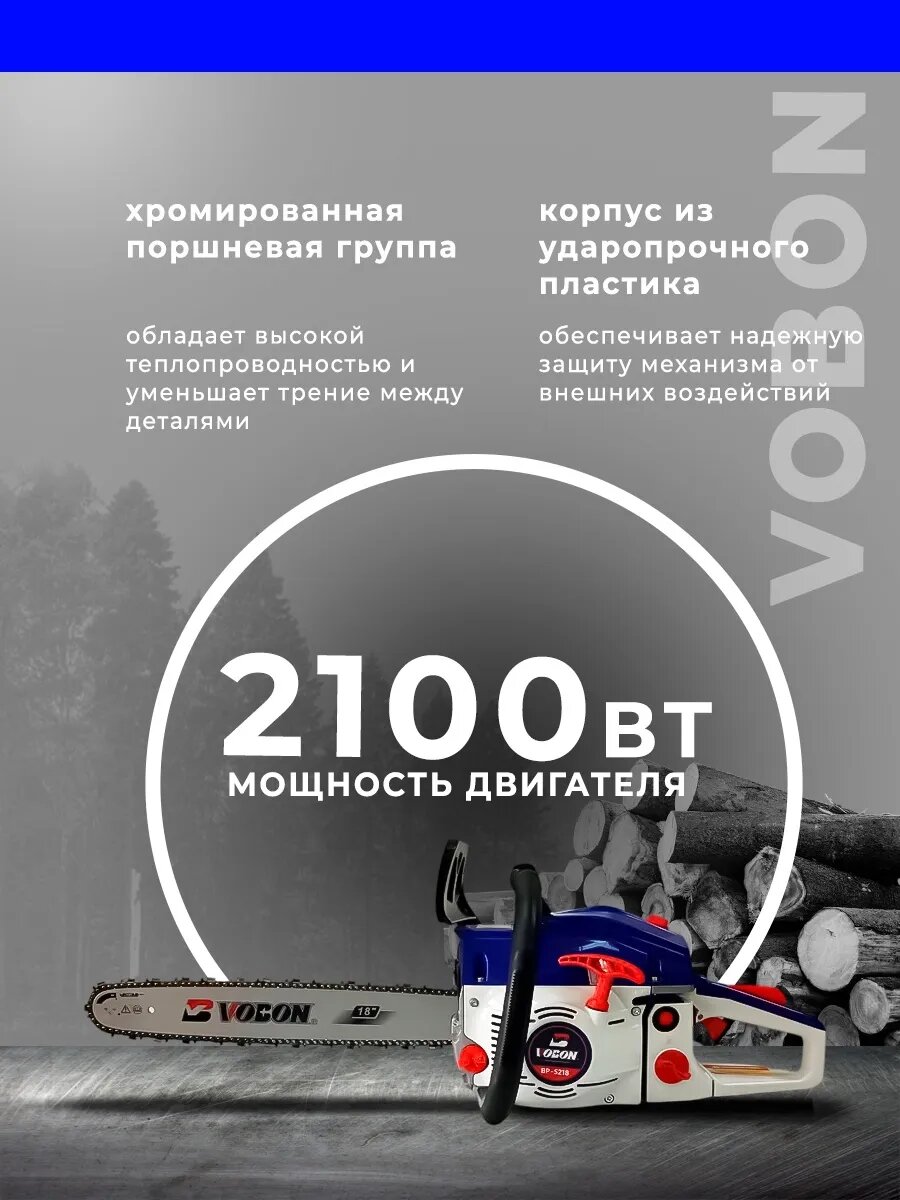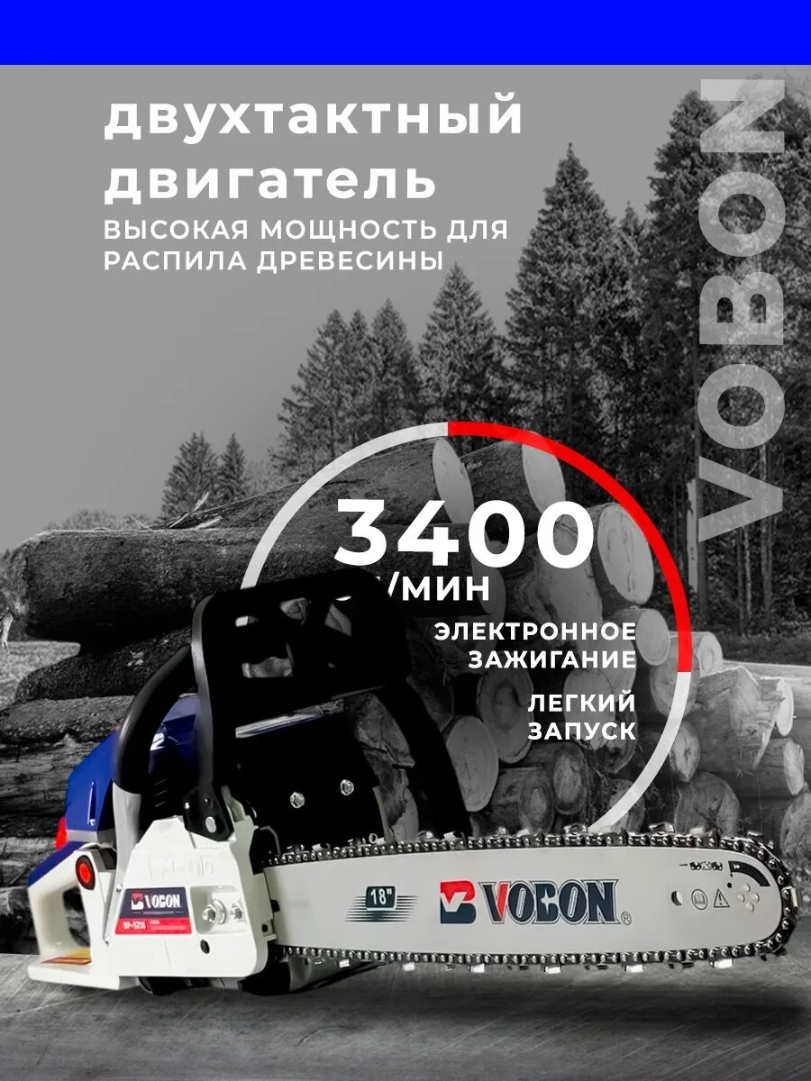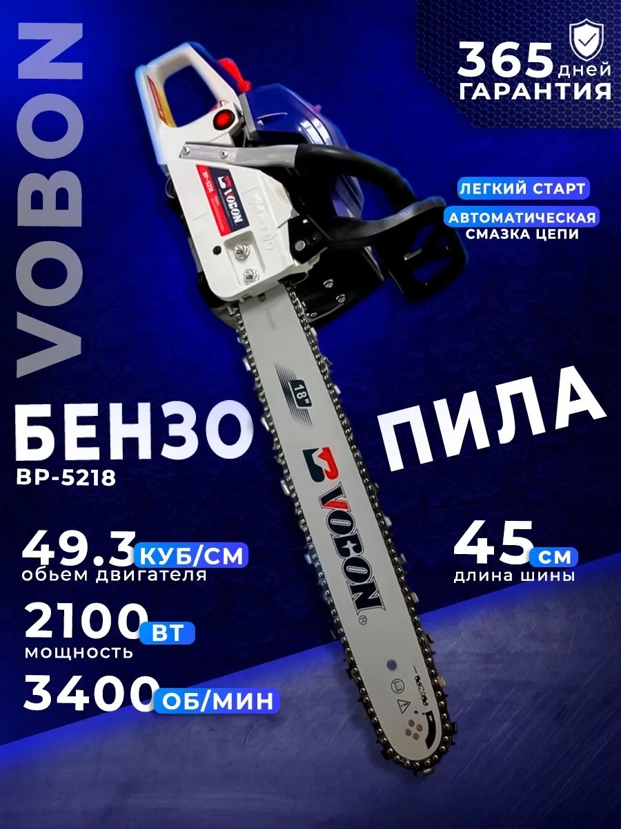 Купить Пила цепная бензиновая VOBON 5218 с доставкой по всей России. Пила цепная бензиновая VOBON 5218: сравнение цен, характеристики, фото, актуальное наличие и цены.