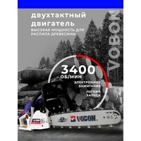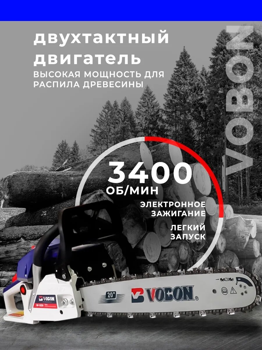Купить Бензопила VOBON, 5220, антивибрационная, плавный пуск, тормоз двигателя с доставкой по всей России.