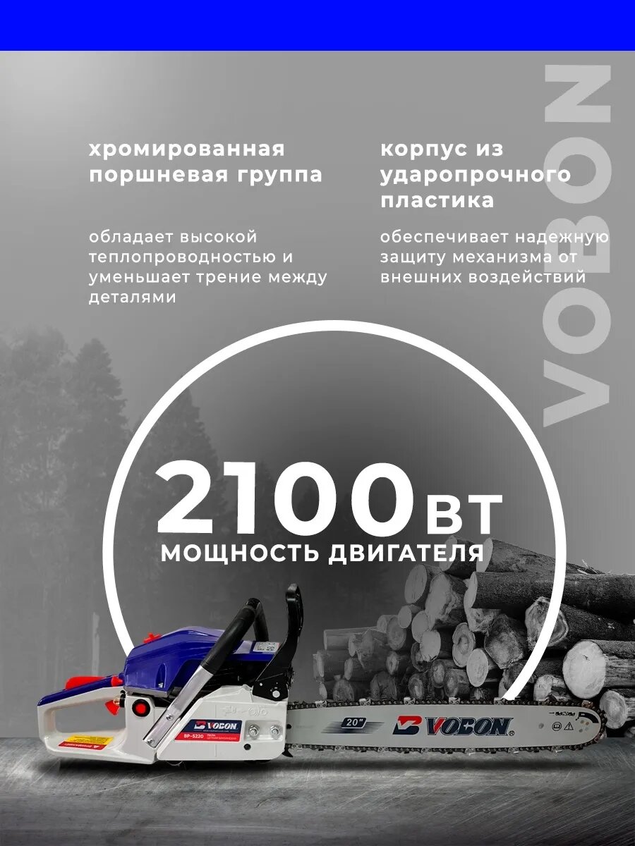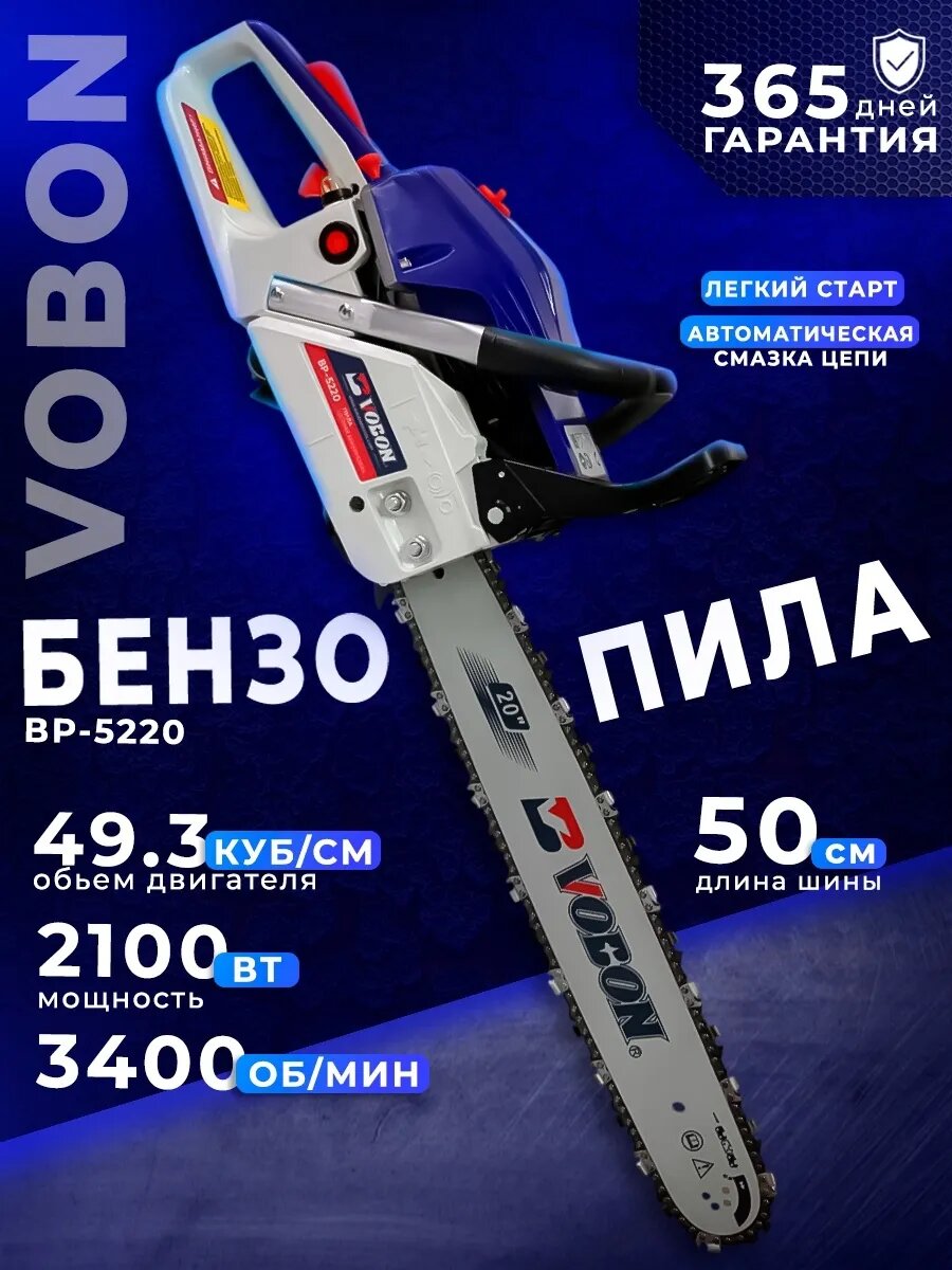 Бензопила VOBON, 5220, антивибрационная, плавный пуск, тормоз двигателя: сравнение цен, характеристики, фото, актуальное наличие и цены.