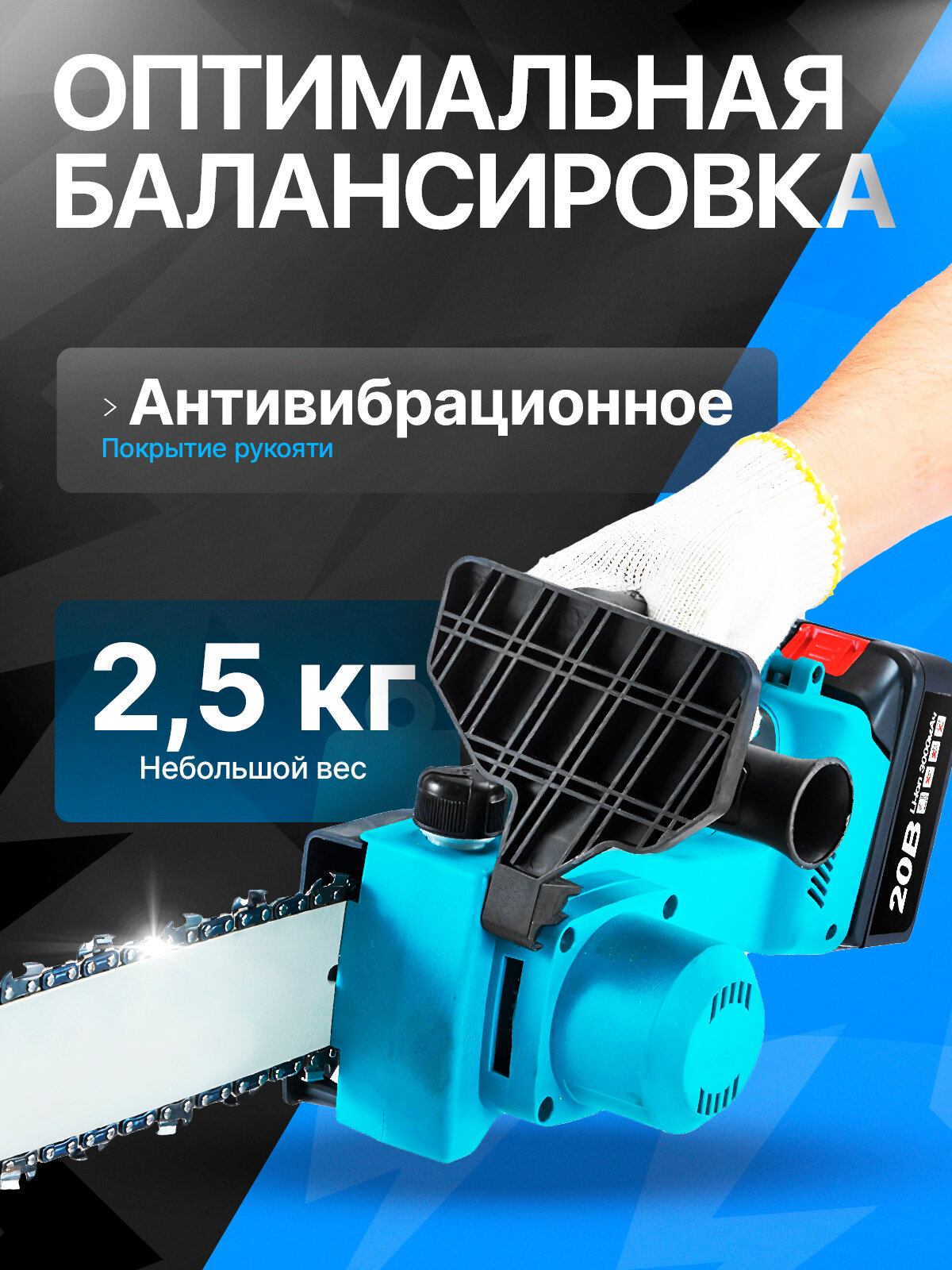 Пила аккумуляторная цепная 12 дюймов — это мощный и надёжный инструмент для работы с деревьями и пиломатериалами. Она оснащена двумя аккумуляторами, которые обеспечивают высокую производительность и мобильность.