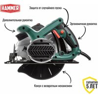 Пила циркулярная Hammer Flex CRP1500D 1500Вт 4700об/мин 190×30мм макс. пропил 67мм