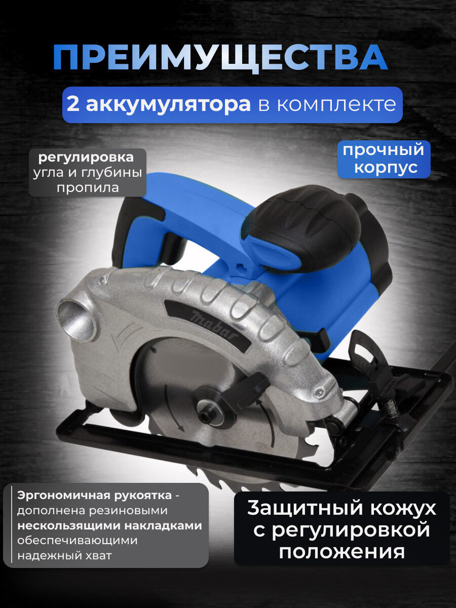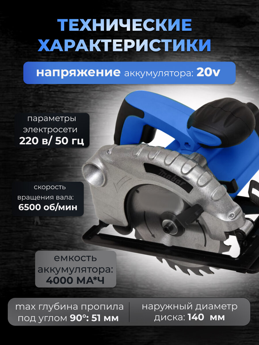 Купить Пила циркулярная Mabar, 140мм, синий, 6500об/мин, 20В, Li-Ion, 3,5кг с доставкой по всей России. Пила циркулярная Mabar, 140мм, синий, 6500об/мин, 20В, Li-Ion, 3,5кг: сравнение цен, характеристики, фото, актуальное наличие и цены.