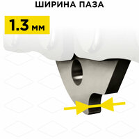 Для удобства обслуживания сверху на зубе нанесена специальная риска, ориентируясь на которую, легче отслеживать правильный угол при заточке.