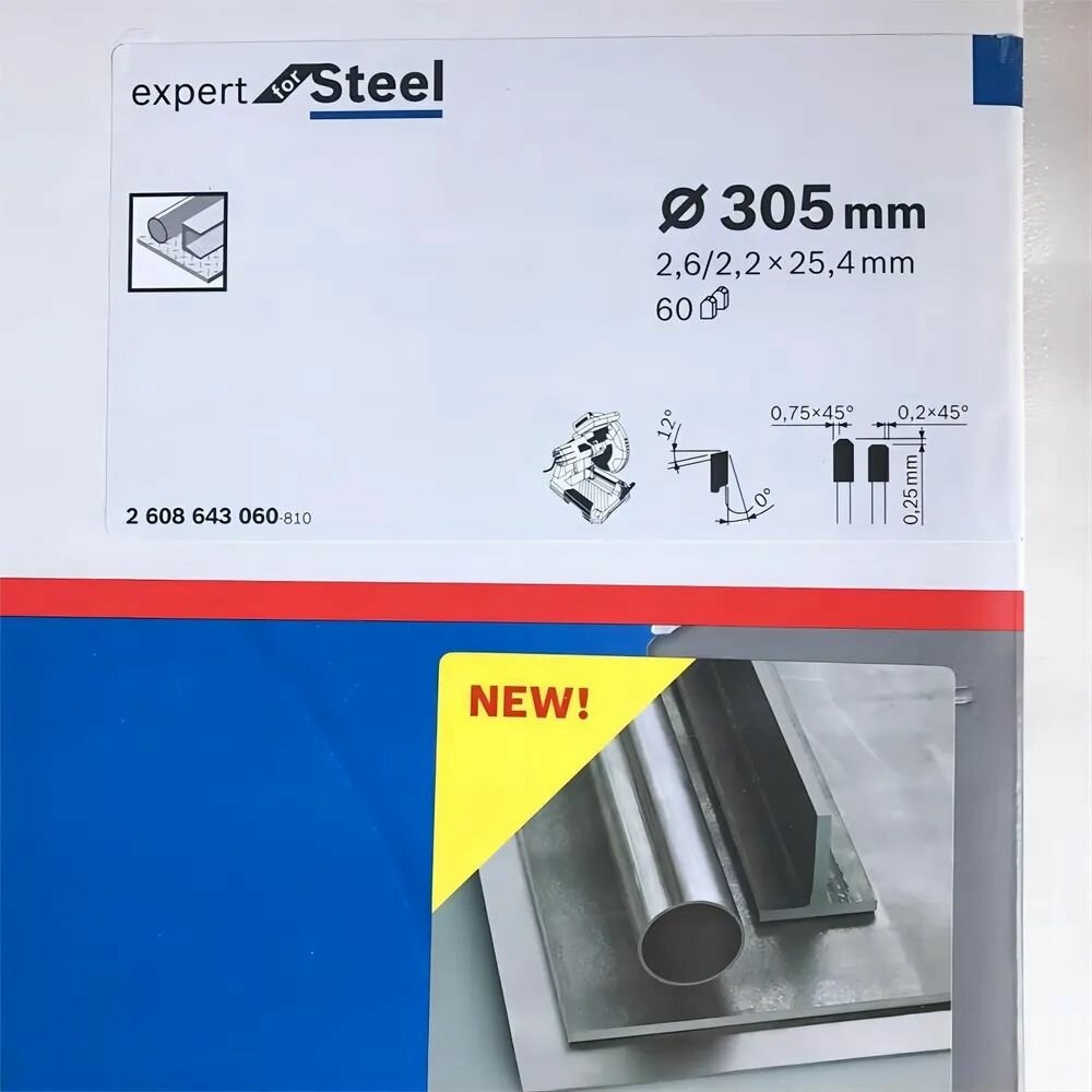 Пильный диск Expert for Steel (305х25.4 мм) Bosch 2608643060 сменная режущая принадлежность для торцовочных пил. Используется для формирования чистого пропила по стальному изделию.