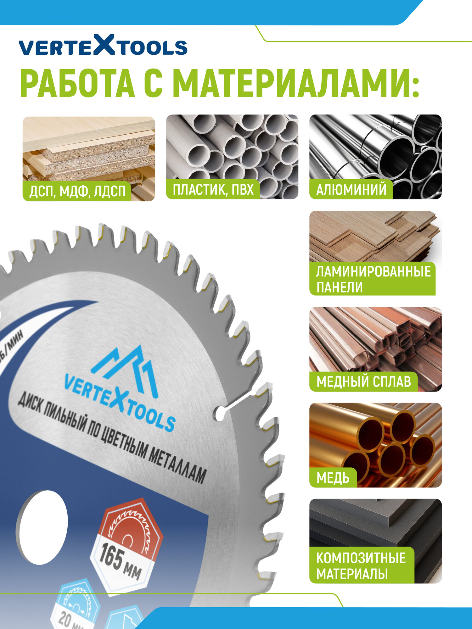 Пильный диск по алюминию цветным металлам пластику VertexTools 165×20 56 зубьев: сравнение цен, характеристики, фото, актуальное наличие и цены.