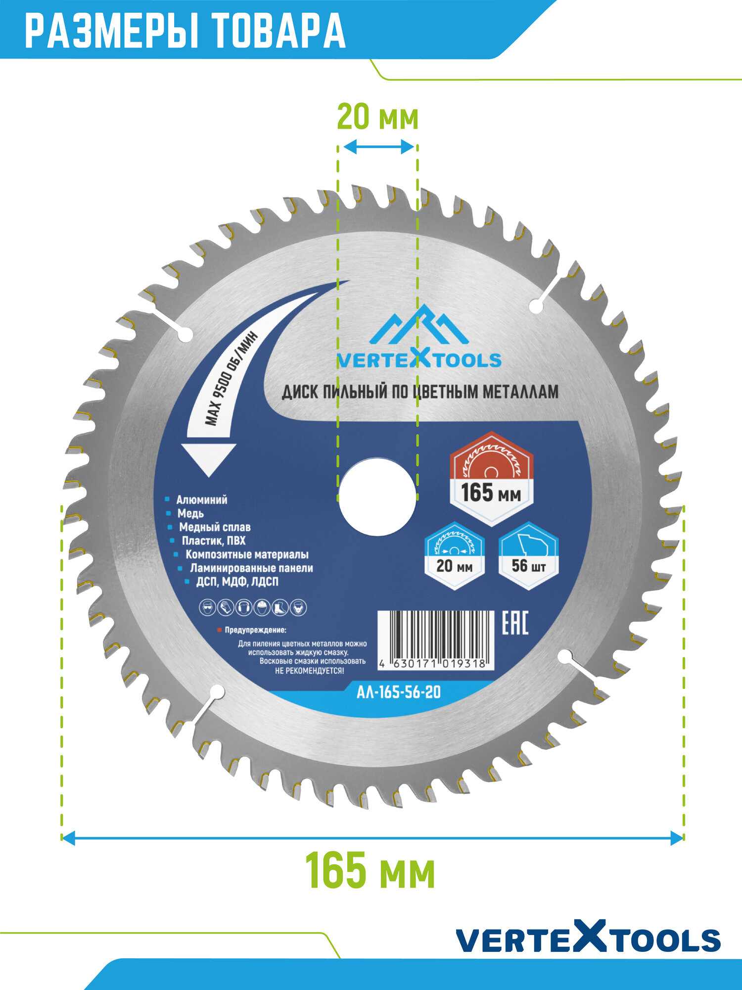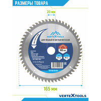 Купить Пильный диск по алюминию цветным металлам пластику VertexTools 165×20 56 зубьев с доставкой по всей России.