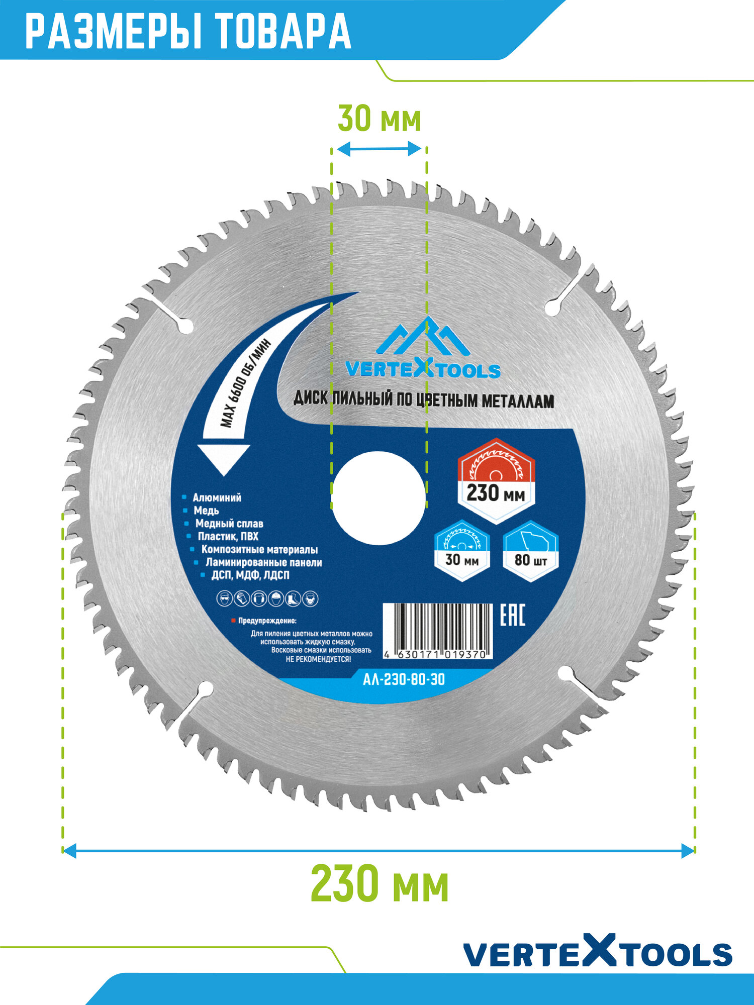 Купить Пильный диск по алюминию цветным металлам пластику VertexTools 230×30 80 зубьев с доставкой по всей России.